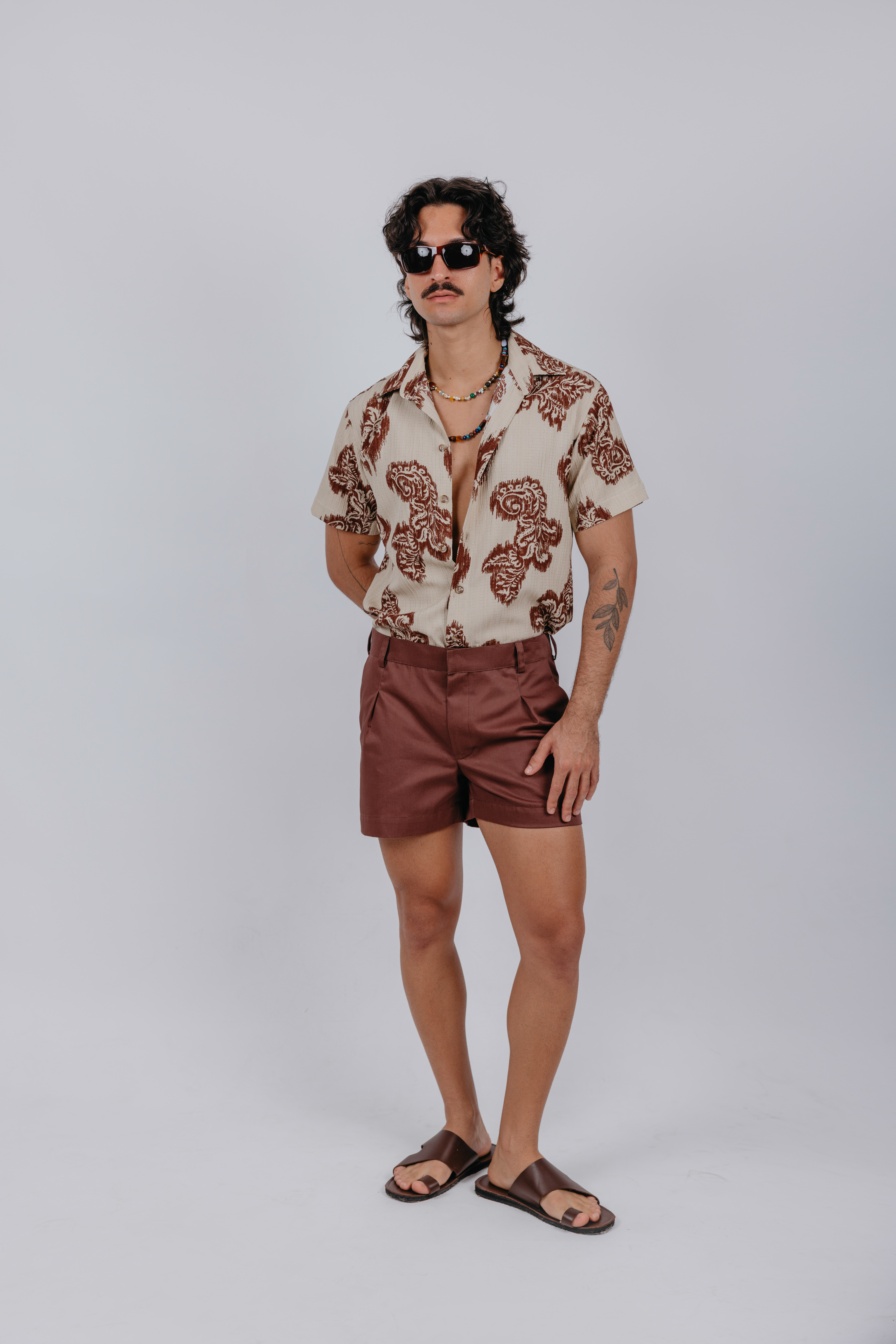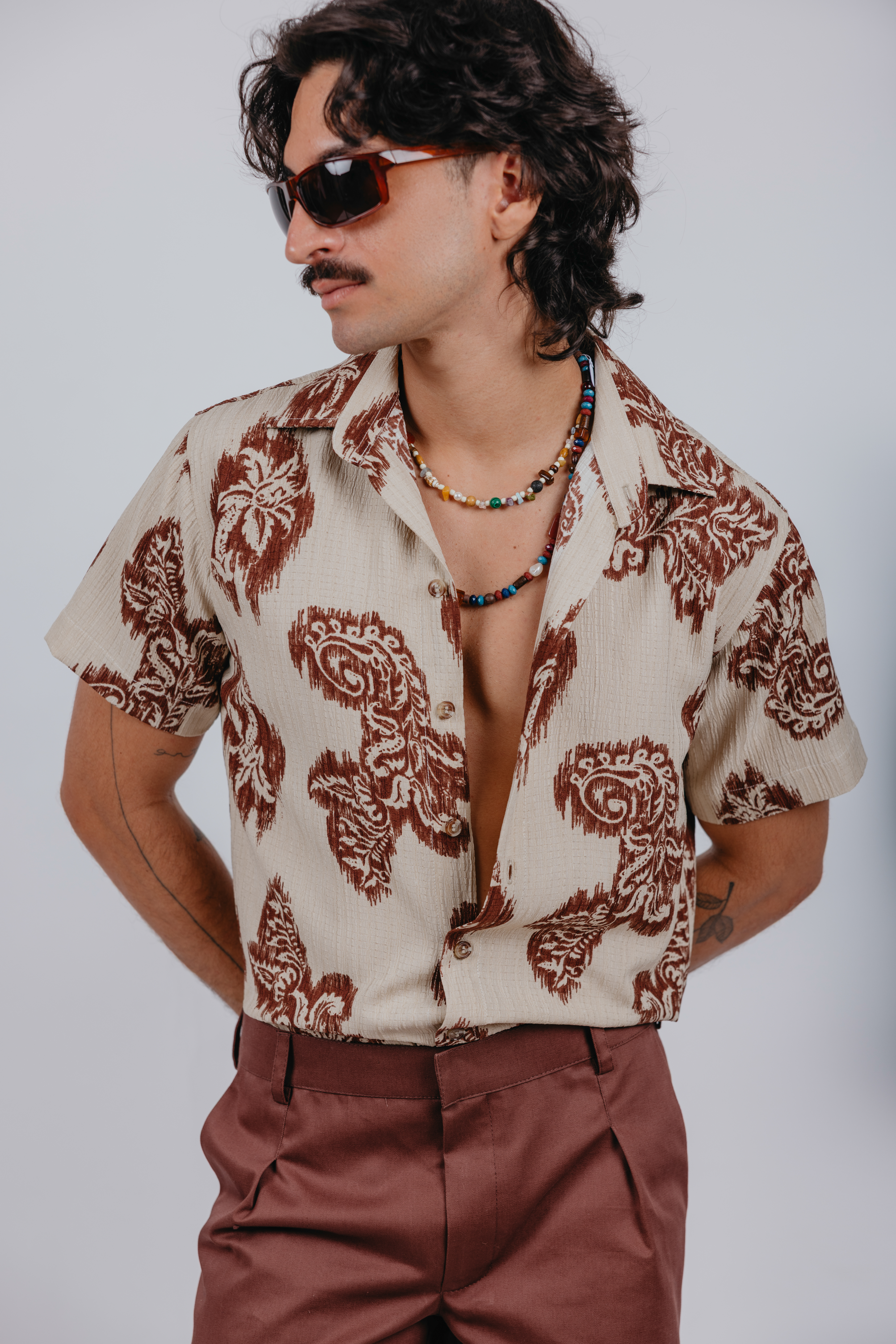 Confeccionada em crepe de viscose texturizado, esta camisa oferece leveza, caimento fluido e toque suave. O tecido agrega elegância ao visual, enquanto a estampa marcante traz personalidade e estilo. Com modelagem confortável e acabamento refinado, é a peça ideal para composições modernas que transitam entre o casual e o sofisticado.