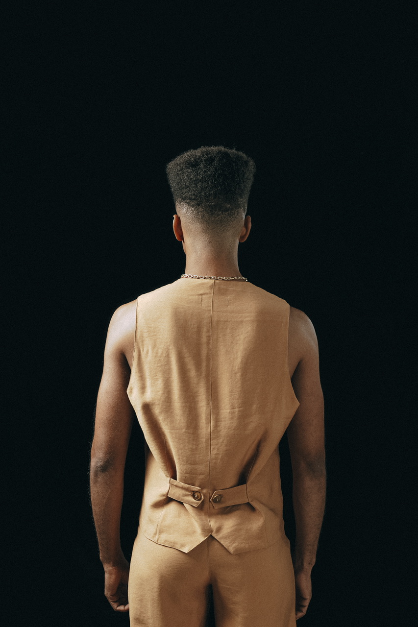Colete + calça reta alfaiataria em viscose Cupro na cor NUDE.