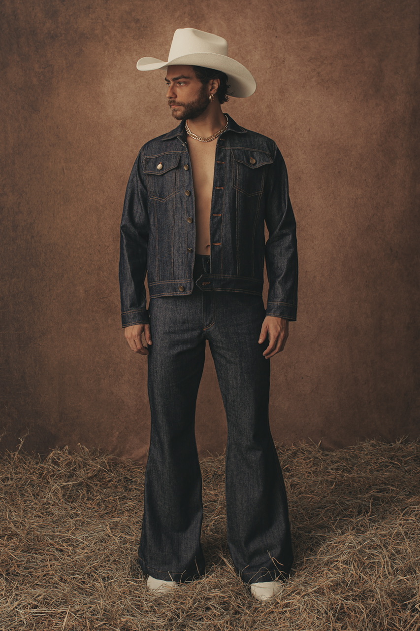 Jaqueta confeccionado em tecido jeans, toda pespontada, botões em metal dourado envelhecido, bolsos na parte frontal, comprimento da peça um pouco mais encurtada. Modelo mede 1,85 usa tamanho de jaqueta M