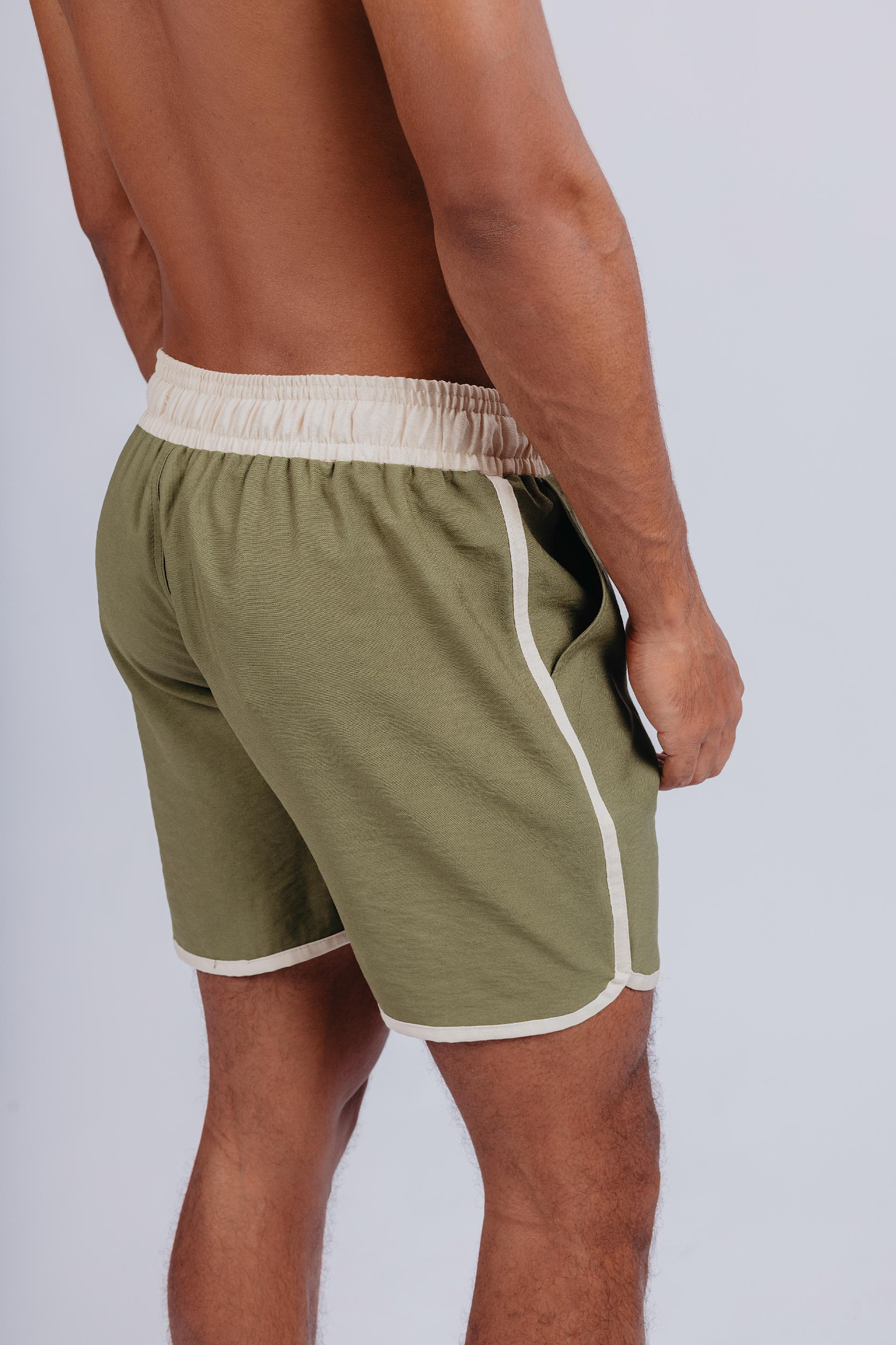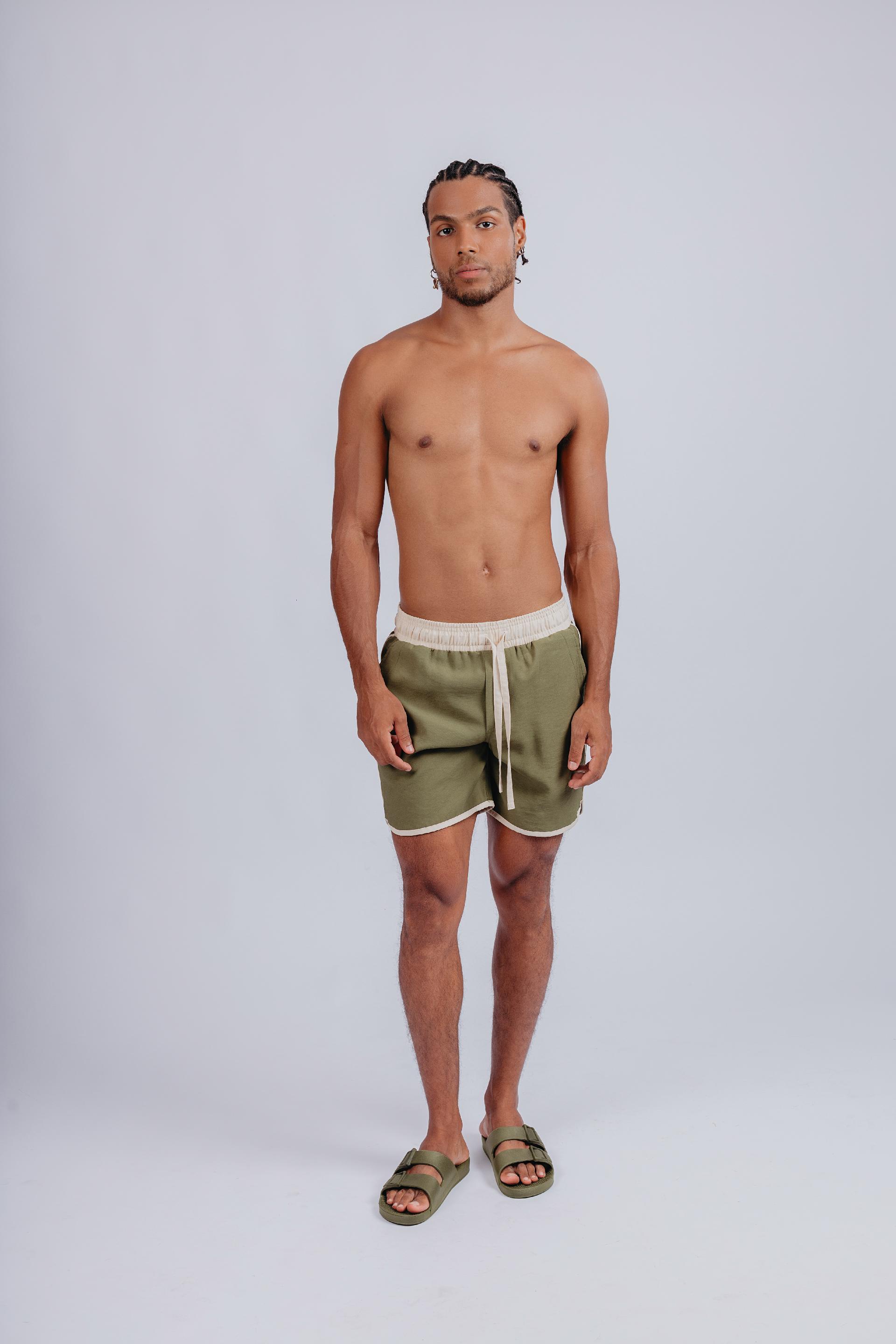 Short verde com cos de elástico, viés e cos na cor nude e bolsos nas laterais. Confeccionado em viscose Cupro. Composição: 92% viscose 8% poliéster. Modelo veste short tamanho G.