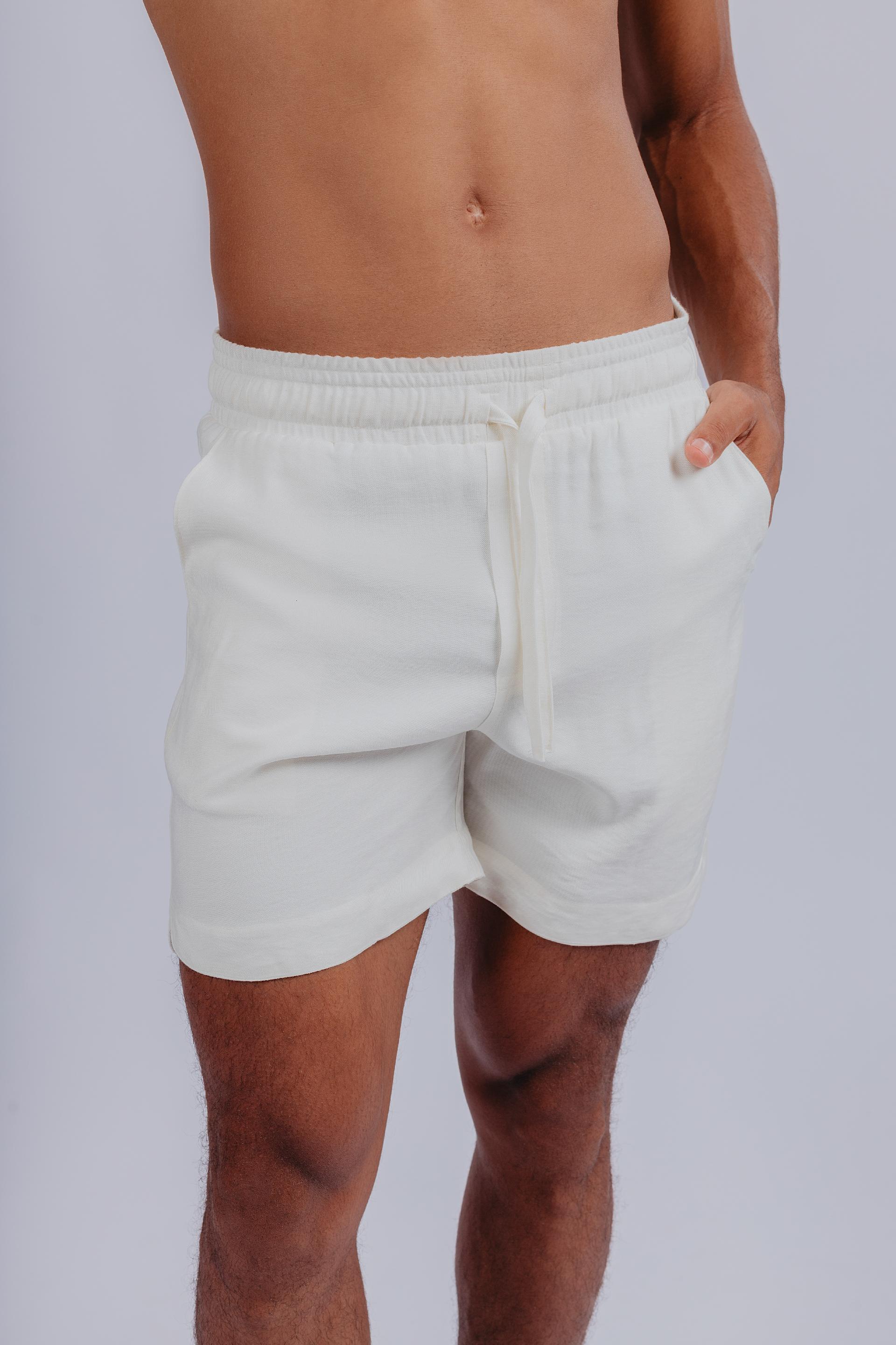 Short com cos de elástico, cadarço no mesmo tecido e bolsos laterais. Confeccionado em viscose Cupro. Composição: 92% viscose 8% poliéster. Modelo veste tamanho G.
